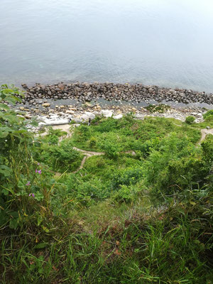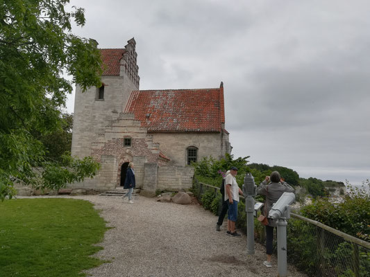 Die ersten 3 Std. bei Regen hab ich mir fast den Arsch abgefroren. Vielleicht brauch ich doch noch eine lange Regenhose, damit ich nicht erfrier weiter oben im Norden. Wie der Regen dann endlich aufgehört hat, wurde es langsam immer besser. Kein Wind und die Füße hatten Kraft, nur der Hintern schmerzt immer mehr. In Stevn's klip hab ich an den Kalkfelsen Pause gemacht und ein älteres deutsches Paar getroffen, die den Berlin Kopenhagen Radweg fahren. Es hat sich rausgestellt, das der Mann ursprünglich aus Solnhofen kommt und jetzt in Gütersloh wohnt. Da fährt man so weit und dann...