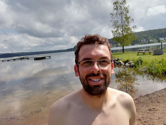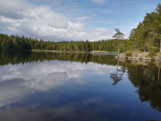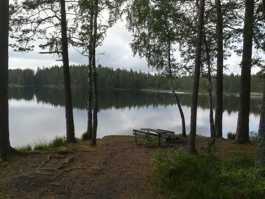 schlecht geschlafen hab. Es ging über viele Bundesstraßen nach Hjo zu einem riesen See, hätte auch das Meer sein können. Von da an ging es nach Norden bis Mölltorp. Dort war Pause am Strand an nem