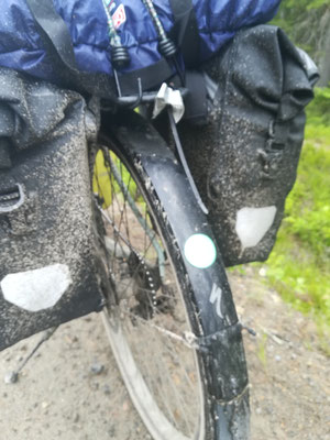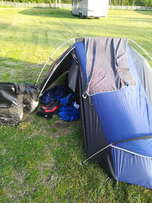 Kein schöner Tag bis dann ab 16 Uhr auf einmal die Sonne aus dem Nichts aufgetaucht ist. Das hat meine Laune echt ein bisschen beflügelt und die letzten 40km fielen mir leichter. Ich musste heute 177km weit fahren damit ich auf dem Campingplatz komm. Das hat mich ganz schön zerstört. Die letzte Stunde wusste ich nicht mehr, wie ich auf dem sattel sitzen sollte. Alles hat weh getan. Am Ende bin ich angekommen!!! Meine Sachen sind mittlerweile alle wieder sauber! Ein Hoch auf die "Ortlieb" Taschen, die sind jeden Euro wert. Alles ist trocken geblieben und den Dreck konnte ich einfach abspritzen.