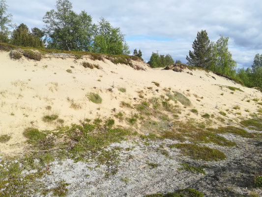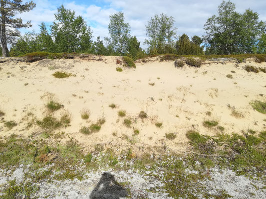 Was mir aufgefallen ist, hier oben gibt es total viele sandige Böden, im Winter, wo ich sonst hier bin sieht man das unter den Schneemassen nicht. Die Rentiere die ich heute gefilmt und