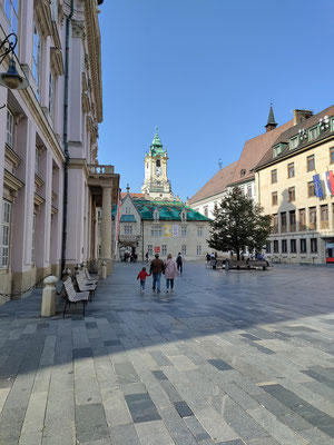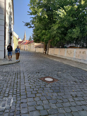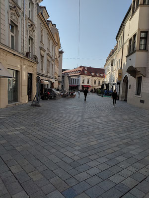Als ich in Bratislava über die Brücke gefahren bin war ich direkt wieder verloren. Keine Schilder vom Radweg weit und breit. Also einfach drauf los. Über Kopfsteinpflaster durch die Altstadt. Mein Fahrradnavi hat dann den weg wieder gefunden und ich konnte nach langen suchen Bratislava wieder verlassen. Zum Glück war es Sonntag morgen und kaum was Bratislava ist zum Fahrrad fahren richtig schlecht.