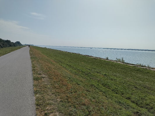 Danach hab ich mich wieder entlang des Damms auf den Weg gemacht. Unendliche weiten! Die Donau wird hier eher zum Meer. Gefühlt hab ich sogar Erdkrümmung erkannt. Ich bin geschlagene 2 Std. auf die scheiß Schleuse zu geradelt! Sowas von langweilig. Danach dachte ich, es kann nur noch besser werden. Aber denkste, danach ging es am Damm weiter der ein bisschen zurück versetzt von der Donau war. Dadurch war links und rechts nur Wald und ansonsten nichts! Für Touristen sowieso nichts. Also nicht Mal nen Kiosk oder so. Total übel, das hat mir heute richtig die Laune verdorben.