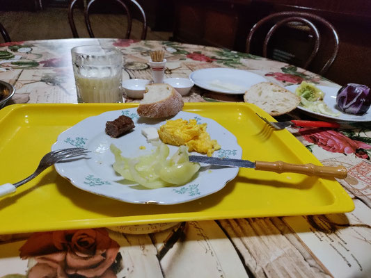 Heute Nacht hab ich geschlafen wie ein Baby. So ein Bett hat schon was. Auch wenn es sogar für mich fast zu kurz gewesen ist. Leider hat mich der Hahn vom Kloster schon um 4 Uhr in der Morgendämmerung geweckt, aber den Kampf hab eindeutig ich gewonnen. Ohne Wecker wäre ich glaube ich nicht mehr aufgestanden!