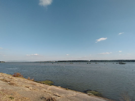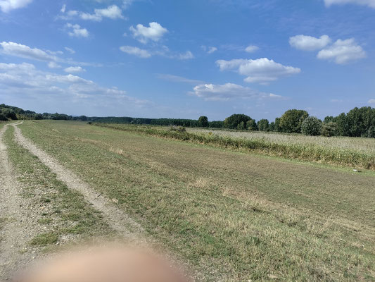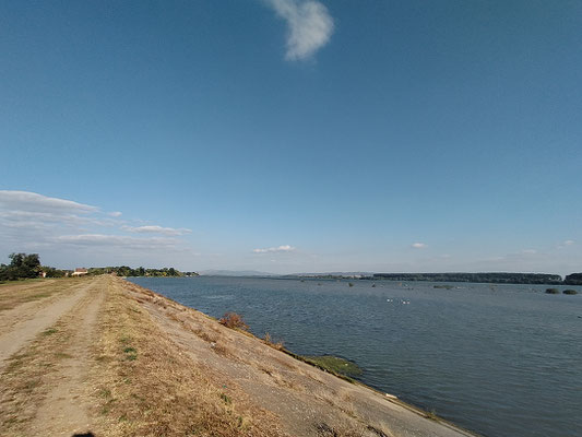 Danach ging es weiter auf dem Damm. Nur leider war der mega schlecht geschottert oder es war ein Feldweg. 30km Höllentrip für den Hintern und Gegenwind hatte ich auch noch dazu. Wie ich dann in Starcevo angekommen bin, hab ich mir vorne nen Plattfuß eingefangen. Also alles vom Fahrrad runter neuer Schlauch rein und Gepäck wieder drauf. Da lagen meine Nerven für heute schon ein bisschen blank. Und aus der Stadt raus kam wieder dieser scheiß Damm mit Feldweg und Schotter Schlaglöcher. Es war mehr Schlagloch an Schlagloch aneinander gereiht, als dass man hier vernünftig Fahrrad fahren konnte.