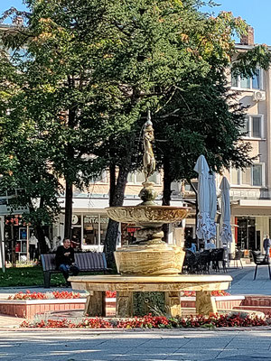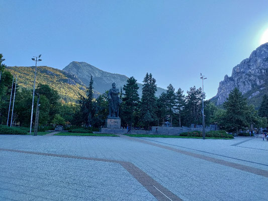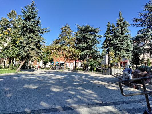 Als ich dann Wraza erreicht hab, hat sich die Landschaft ganz schön verändert. Ich bin in den Bergen angekommen. Wraza liegt direkt unterhalb eines mächtigen Bergs. Denk mal so 1200m hoch oder so. Die Landschaft ist auch wieder grüner geworden. Wraza hat eine echt schöne Innenstadt. Aussen begrüßen einen immer die ganzen alten und kaputten Bauten, aber Innen war es echt schön. Eine schöne Fußgängerzone und schöne Plätze. Darum hab ich hier Pause gemacht und weiter überlegt, wie ich das Übernachtungsthema löse. 130km hatte ich schon in den Beinen. Ich könnte mir hier ein Hotel nehmen und gemütlich bisschen Abend, was Essen gehen. Anderseits weis ich, dass noch einige Berge auf dem Programm stehen und ich heute einen kleinen Anstieg schon mal hinter mich bringen könnte.