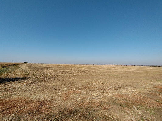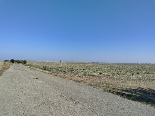 Ich muss sagen die LKWs und Autos passen aber gut auf mich auf. Ich glaub die sind das gewohnt, dass hier Leute auf den Fahrbahnen mit rumturnen. Außerdem freuen die sich voll wenn sie mich sehen. Hupen mir zu zeigen Daumen nach oben etc. Insgesamt ist der Verkehr auch meist langsamer als in Deutschland. Nach den ersten 30 km, hab ich dann endlich eine schöne Landstraße erwischt. Es ging über eine Ebene mit Feldern soweit das Auge reicht. Wirklich krass, wie groß die Felder sind. Da schauen so riesen Bulldogs echt mikrig aus. Es ist ein bisschen so, wie in Ostdeutschland. Dort hab ich auch schon mal solch riesige Flächen gesehen.
