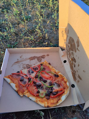 Nach einer Verschnaufpause, hab ich entschieden ich kauf mir jetzt 2 Pizzas, spann sie auf mein Rad und mach nochmal 20km und bring den ersten Anstieg heute noch zu Ende.