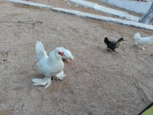 Heute Morgen nach einer unruhigen Nacht, wegen ständigem Hundegebell und morgigen um die Wette krähen einiger Hähne, war ich ganz schön gerädert. Aber wenigstens hatte ich beim Zeltabbau Gesellschaft von Zwerghühnern und ein paar Küken. Und ich hab in dieser Nacht endlich mal im Zelt nicht gefroren. Dafür war es mir viel zu warm, obwohl ich schon nur noch halb so viel an hatte. Aber schwitzen ist mir eindeutig lieber als frieren.