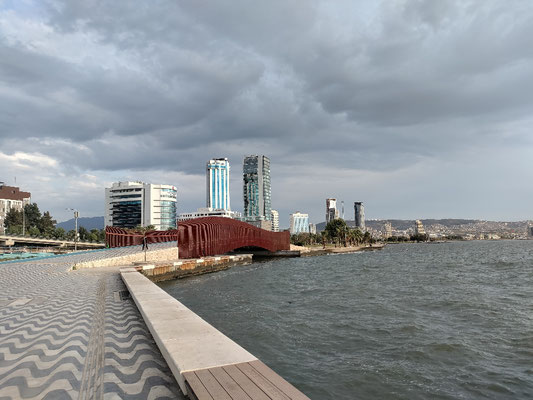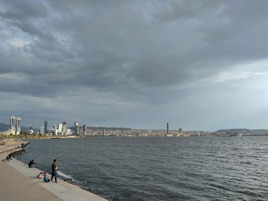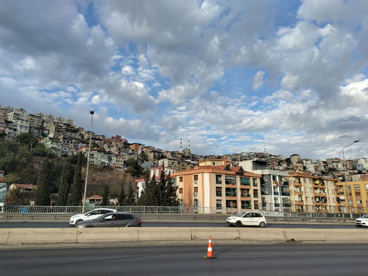 Je näher ich Izmir kam, umso schlimmer wurde der Verkehr. Verdammt viel LkW und meine Standspur war immer seltener frei oder überhaupt vorhanden. Die letzten 30km bis kurz vors Ziel, bin ich dann im wilden türkischen Verkehr mitgefahren. Da muss man schon echt aufpassen und sich selber vertrauen, dass man keinen Fehler macht, nach 130km in den Beinen. Aber es ist alles gut gegangen. Auch wenn mich das ganze gehupe echt nervt. Mittlerweile nehm ich auch rote Ampeln nicht mehr so ernst. Sobald frei ist, wird einfach weiter gefahren. Und wenn man mal auf die linke Spur muss, weil alles zugeparkt ist, bin ich da mittlerweile abgehärtet, auch wenn LKW's sich 30cm an mir vorbei drücken. Wir kriegen das schon gemeinsam hin ;).