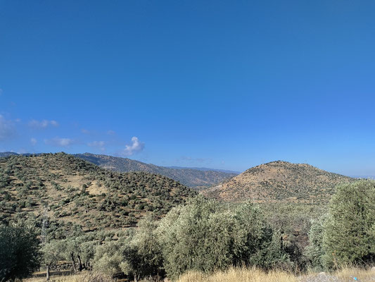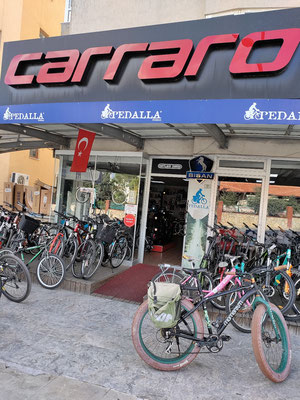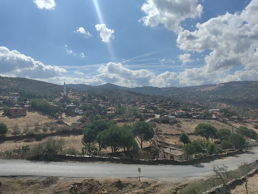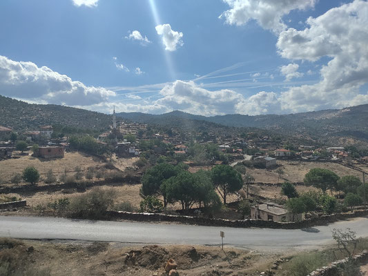 Als ich wieder alles gepackt hatte, ging es in die Berge hoch. Ich hatte wirklich ein total unsicheres Gefühl mit meinen Reifen, welches auch nicht bis Mugla wegging. Ich hab glaub ich mehr auf meine Reifen und wie ich den Glasscherben ausweichen kann, als auf den Weg und den Verkehr, geschaut. So hab ich mich dann 2 Stunden nach oben gekämpft und Mugla erreicht. Nicht geil aber ich bin angekommen. Hier bin ich dann mal wieder in den Fahrradladen. Erster Laden hatte leider meinen Reifen nicht. Mit Händen und Füßen hat er mir das erklärt. Aber einen Helm gab's und ich hab mir als Sonnenschutz einen neuen gekauft. Ich hoffe nur für andere Zwecke kommt er nie zum Einsatz, sonst hab ich ernste Probleme.