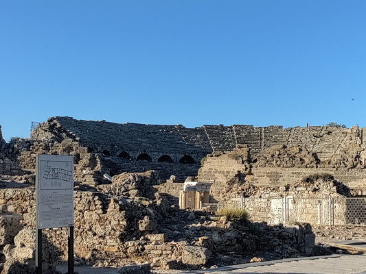 Heute morgen hab ich mich noch gut mit meiner Gastgeberin unterhalten und sie hat mir Tipps gegeben, was in Alanya schön ist. Kleopatra Beach, hab ich mir dann angeschaut und für sehr cool befunden. Für die Burg blieb mir leider keine Zeit und von unten hab ich sie nicht mal richtig wahrgenommen. In Side konnte ich heute alles nochmal ohne Touris anschauen, keiner unterwegs um diese frühe Zeit. Dort hat der Ort echt was magisches versprüht! Diese alten Ruine eingebettet in die aktuelle Bebauung echt geil!