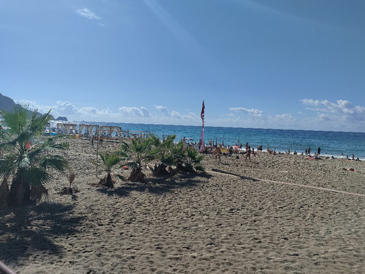 Dadurch dass ich heute richtig Power in den Beinen hatte, bin ich gleich mal die ersten 60km bis Alanya durchgefahren. Ich glaub die Sogwirkung ins Ziel setzt ein. Dort war ich dann einkaufen und hab es mir am Strand gemütlich gemacht, während ich dort meinen Proviant vernichtete. Sehr schön muss ich sagen. Hat mir persönlich noch besser als Antalya gefallen.