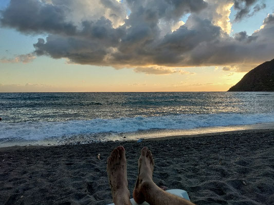 Schnell noch ins Meer gehüpft, damit ich nicht mehr so schwitze und jetzt sitze ich hier auf meiner Liege und genieße, diese Reise. Total verrückt, dass nur noch 165km fehlen. Ein bisschen unglaublich, wenn ich da nur an meinen Start in Sola zurückdenke.