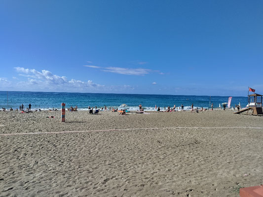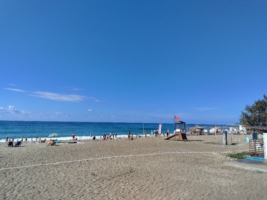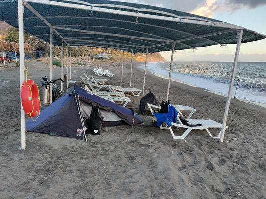 Heute hab ich 149km geschafft. Die Vernunft hat mich heute hier zum Strand fahren lassen. Ich hab nochmal überlegt und gerechnet, ob ich den nächsten Anstieg noch schaffe. Aber da dort auch keinerlei Unterkunft zu finden war, und ich vermutlich an der Bergstraße kaum einen Schlafplatz finden kann, hab ich mich entschieden hier zu bleiben.