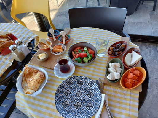 Ich bin dann ganz gemütlich frühstücken gegangen und das war mega lecker mit einem tollen Blick über die Bucht.