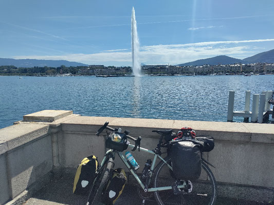 Wie ich in Genf am Endpunkt des ersten Abschnitts meiner Reise ankam und mir die Fontäne und die Gebäude angeschaut habe, kam ich ganz schön ins Staunen. Sehr schöne alte Gebäude gibt es dort. Wirklich eine sehr schöne Stadt. Aber die Fontäne reißt es natürlich raus ;).
