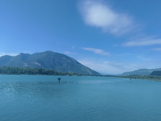 Der Weg zur Rhone hat mir ganz schön Höhenmeter auf die Uhr geschlagen. Aber das Panorama war wirklich jeden Meter wert. Als ich dann endlich an der Rhone angekommen bin, musste ich gleich nochmal durch die Hügel Landschaft, weil das Ufer so steil war das man hier nicht an der Rhone direkt fahren konnte. 20 km später hatte ich dann endlich das Glück einfach dem Fluss diesmal flussabwärts folgen zu können. Dort konnte ich einiges an Metern machen und gleichzeitig war ich umringt von grandioser Landschaft. Berge, Fluss, Wald und Wiesen. So ging es diesmal auf 151km.
